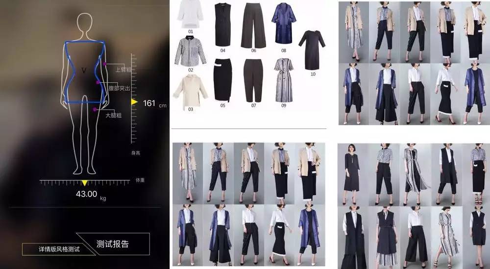 ◆根据用户提交的测试数据,小蝶为H体型客户准备了十件单品和搭配方案。