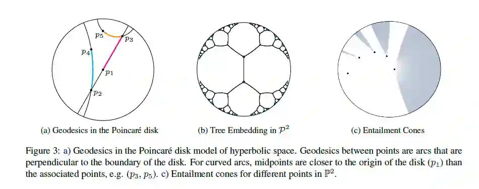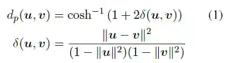 双曲空间具有分层结构,在Poincare-ball模型中比较明显,靠近圆盘原点的点相对于球中的所有其他点相对较近,而靠近边界的点则相距较远,距离是学习分类结构连续性的关键,并且与书中最短路径相对应。