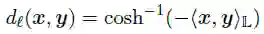表示n维双曲面的上层,其中L的相关距离函数为: