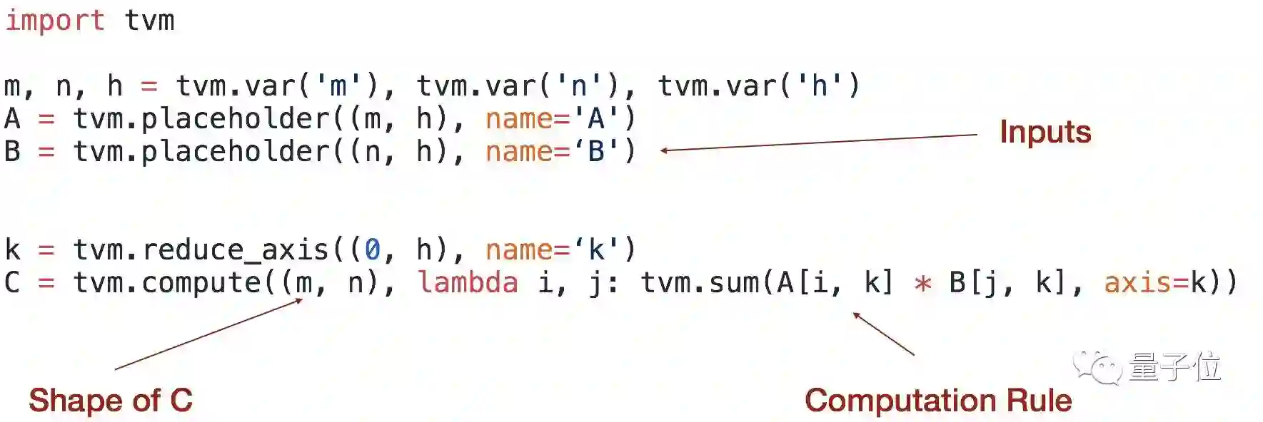 然而,我们发现仅基于IR的计算图不足以解决支持不同硬件后端的挑战。因为单独一个图形运算符,例如卷积或矩阵乘法能以非常不同的方式映射和优化在不同的硬件后端。这些特定硬件优化在内存布局、并行线程模式、缓存访问模式和硬件基元的选择方面,可能会发生巨大的变化。我们希望能以通用方式对此进行明确表达。