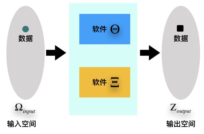 用一个形象的类比来说明:将软件看作是一个秤,要秤的东西是输入空间的数据,秤的重量刻度表是输出空间。我们将某些数据放在称上时,能够秤出重量的,可以从刻度表上读取数值;不能称出重量的,就无法从刻度表读取数值。(下图示意)