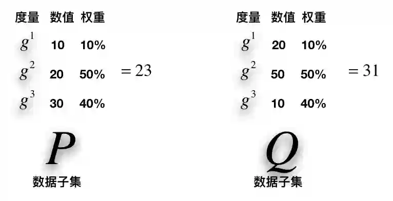 例如,我们选择三种度量和固定权重计算两个数据的价值。(下图)