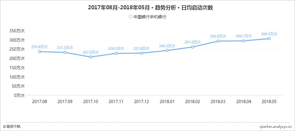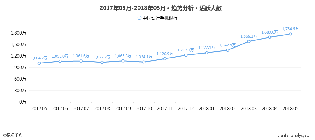 产品迭代、活动运营等促进中国银行手机银行活跃用户保持稳定增长,2018年5月中国银行手机银行活跃用户为1764.6万户,环比增长4.99%。产品迭代方面,中国银行新版手机银行推出跨境金融专区、GPI“中银智汇”全球汇款、校园消费贷款、国家助学贷款等功能;同时充分利用行内外大数据,引入腾讯云计算、机器学习等方面技术,共同研发全新事中监控系统,主动实时监控,实现全流程、全业务和全渠道的业务风险管控;另外,人脸识别、指纹识别等生物识别技术的应用为客户提供了更加便捷、安全的使用体验。