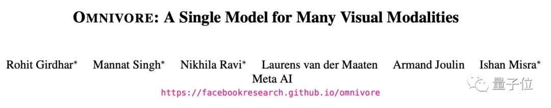 最近,Meta AI推出了这样一个“杂食者” (Omnivore)模型,可以对不同视觉模态的数据进行分类,包括图像、视频和3D数据。