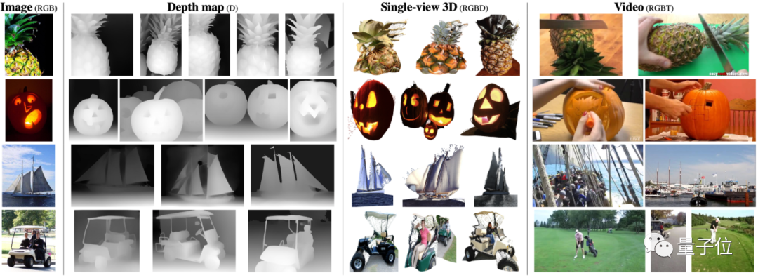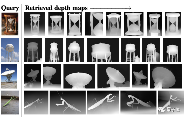 比如面对最左边的图像,它可以从深度图、单视觉3D图和视频数据集中搜集出与之最匹配的结果。