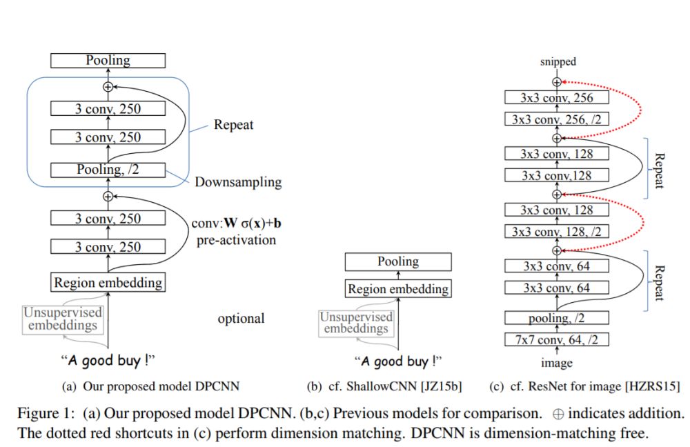 论文中提出了一种基于 word-level 级别的网络-DPCNN,由于 TextCNN 不能通过卷积获得文本的长距离依赖关系,而论文中 DPCNN 通过不断加深网络,可以抽取长距离的文本依赖关系。