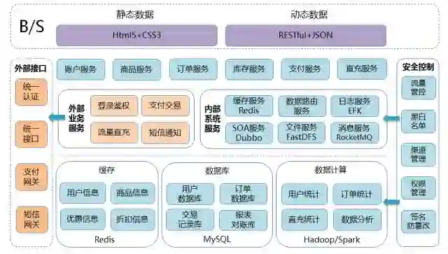 架构设计思想:在系统初期设计时以及部分硬性环境约束下,我们根据业务拆分为多个子系统(微服务):商品服务、订单服务、库存服务、支付网关、统一接口平台、对账服务、结算服务、网关对接服务等,后续还会增加:账户服务、虚拟货币服务、卡券服务等等…。