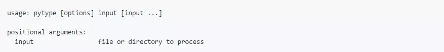 -o,--output:所有pytype输出的保存目录,包括生成的.pyi文件。默认为.pytype。