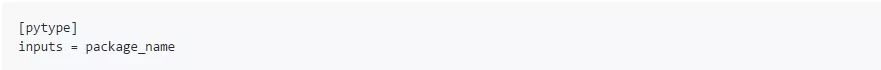 要在整个包上设置pytype,请将以下内容添加到包上级目录中的setup.cfg文件中,用包名替换package_name: