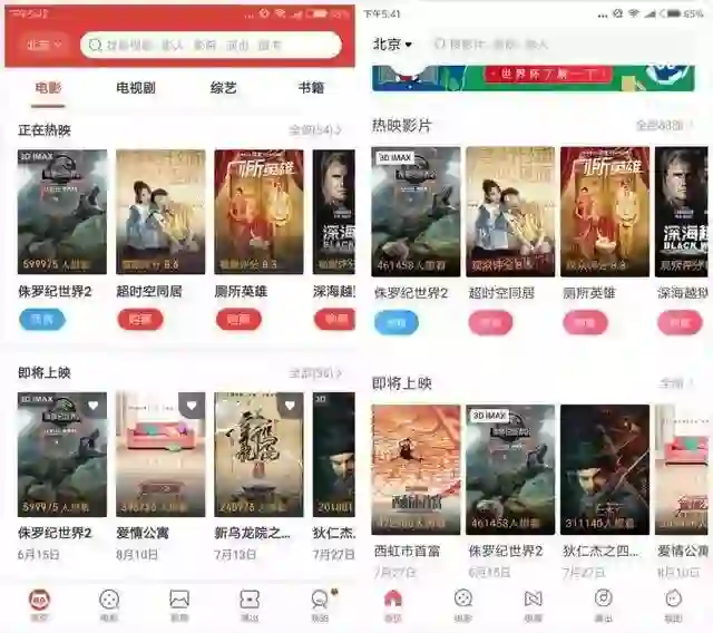 比如这周猫眼电影和淘票票主推的影片都是《侏罗纪世界2》。但在“即将上映”这一栏里,两个app排列的影片却有所不同,这是根据它们在各自平台上的想看人数由高到低排列的。