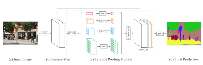 PPM使用上个卷积层出来的特征图,然后应用多个子区域平均池化和以及上采样函数来得到不同的子区域的特征表示,然后连接在一起,这样就带有了本地和全局上下文的信息,可以让图像的分割过程更准确。