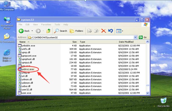 “阿拉婆”将自身复制为\system32\urdvxc.exe