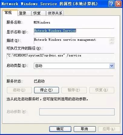 大东:首先,当然是立即停止计算机上显示名为"Network Windows Service"的服务项,删除病毒生成注册表项,还要删除那个万恶之源urdvxc.exe文件。