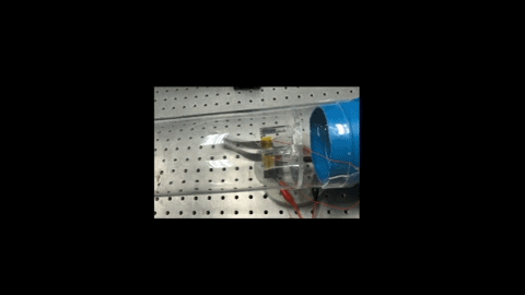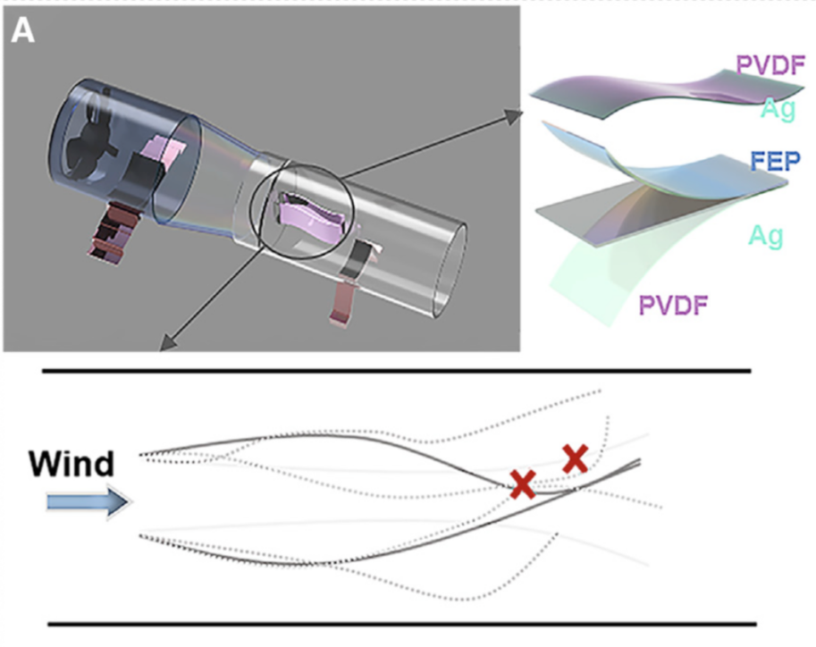 在这个风收集系统中,当气流稳定时,两膜由于伯努利效应会表现出快速周期性的接触和分离的动态特征。