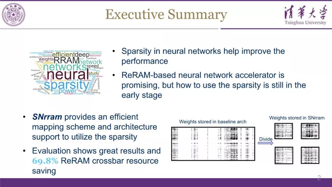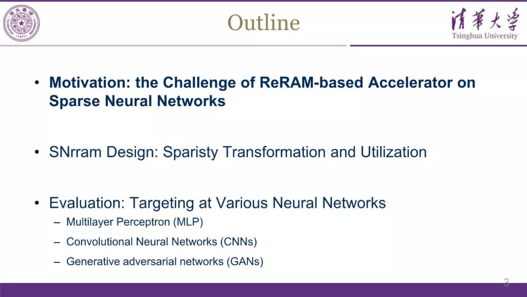 在这次报告中,简要介绍一种针对稀疏神经网络的硬件加速架构设计。神经网络算法的迅速发展,对硬件的计算资源和存储资源需求都在不断提高。从体系结构的角度,我们设计了一种专用的加速架构,可有效利用网络的稀疏性来实现硬件加速。