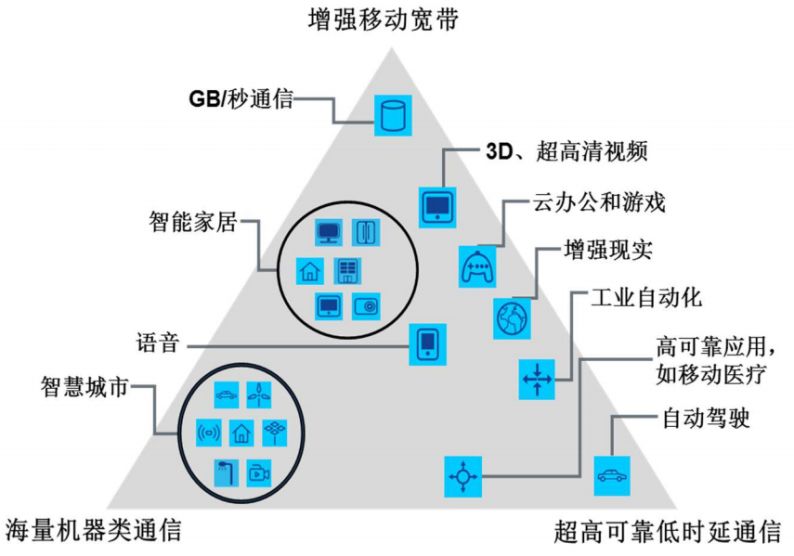 从近两年发布的5G标准[1]中可以看到,相对于4G技术,5G将以一种全新的网络架构,提供峰值1Gbps以上的带宽、毫秒级时延和超高密度连接,实现网络性能新的跃升。5G的愿景包括三方面。1)增强移动带宽。5G将为用户提供超高清视频、下一代社交网络、增强现实等更加身临其境的业务体验,促进人们交流方式再度升级。2)海量机器类通信。5G将支持海量的机器通信,以智慧城市、智能家居等为代表的典型物联网的应用场景与移动通信深度融合,预计有海量的设备将通过5G网络开展服务。3)超高可靠低时延通信。5G还将提供超高可靠性、超低时延的网络通信,促进如工业互联网、车联网、移动医疗等相关行业的应用,拓展大市场,带来新机遇,有力支撑数字经济蓬勃发展。