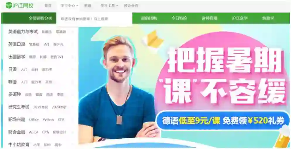 大学考试备考课程主要包括国家研究生入学考试及CET4/6。课程的上课模式包括直播、录播及两者结合。