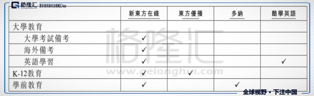 主要向处于不同年龄阶段的学生提供三大核心类别的在线教育课程-大学教育、K-12教育及学前教育。