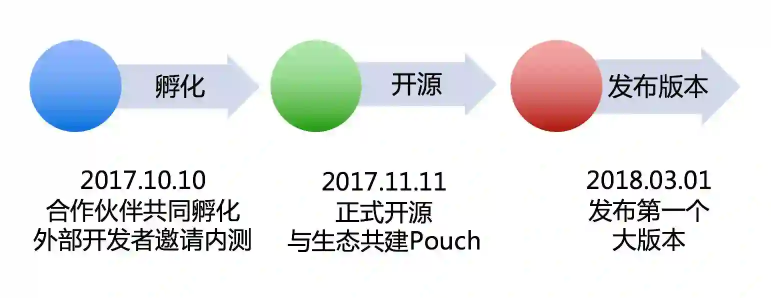 “不积跬步无以至千里”。Pouch的渊源可以追溯到2011年,当时阿里内部基于LXC技术为业务提供容器服务,经过七年左右的技术锤炼与经验积累,铸就了阿里容器技术的今天。也正是这七年在业务实践中踩过坑、走过弯路,让Pouch以一个务实者的姿态出现在如今的容器生态圈。相比docker、rkt等容器技术, Pouch在容器生态中并不是一个创新者,但是阿里认为“只有Pouch更懂应用,更贴近场景”,项目名称Pouch本意为育儿袋,也隐喻贴身呵护应用的意义。