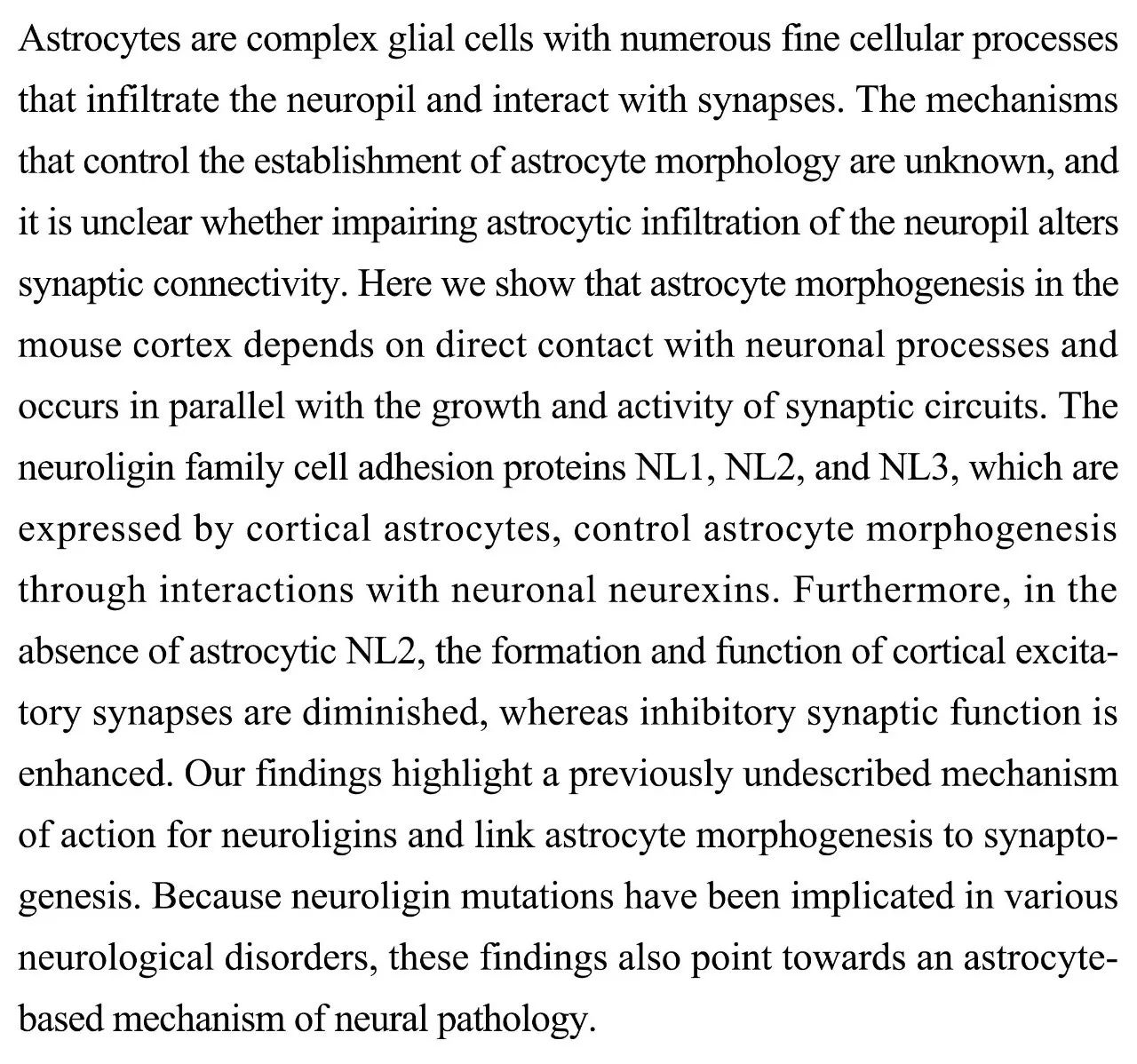 【封面故事】Astrocytic neuroligins control astrocyte morphogenesis and synaptogenesis