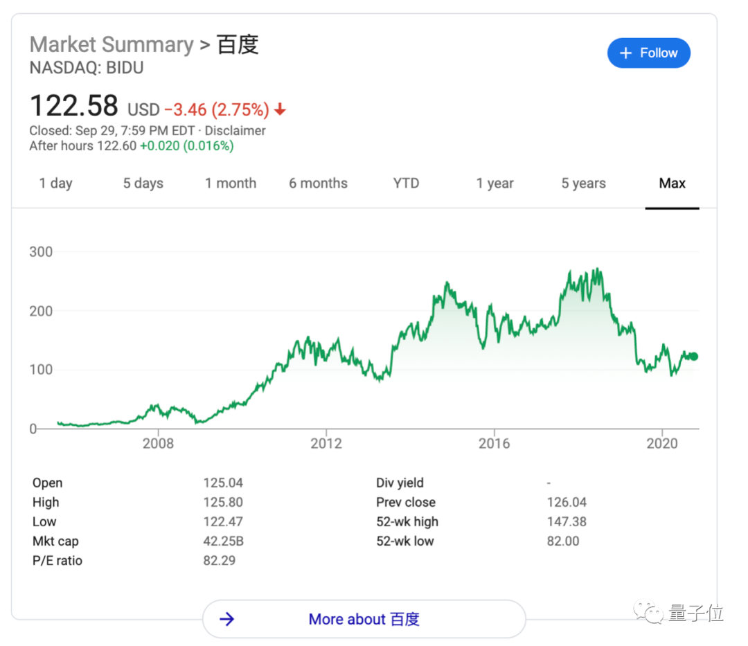 由于处在转型期,且受到字节跳动等在广告营收方面的冲击,百度最新市值不过430亿美元。