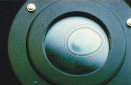 人们可以通过以下牛顿环(Newton's ring)这个实验来观察光的干涉现象. 在这个实验里,我们会把凸玻璃置于另一块平面玻璃上,这样它们之间就有细少的空气层(见图6). 当光线照射时,光线会分别被玻璃面和镜面反射. 如果两条光线能够波峰对着波峰,波谷对着波谷排列的话,相长干涉便会发生. 但如果光线照射到另一处位置时,波谷对着波峰,则会发生相消干涉. 在凸玻璃和镜的中央,凸玻璃的底面和镜的上面互相紧贴着,这时光线是同相(in-phase)的. 当光线远离中央时,空气层就会越来越大. 最终,反射光线会发生相消干涉(见图7). 这就解释了为何会首先看见暗带. 当距离越来越大时,两波会再次排列,你就会看到亮带,如此类推. 这个实验让我们看到了光就是波的实验证据.