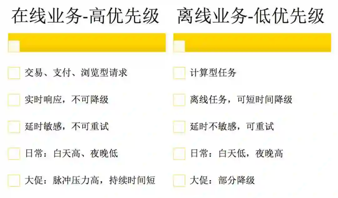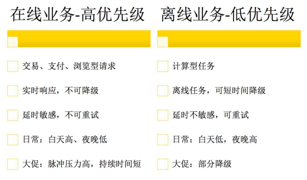 从不同业务的运行时特性分析,我们可以发现,在线型业务和离线型业务,具备业务压力错峰和资源错峰的条件;