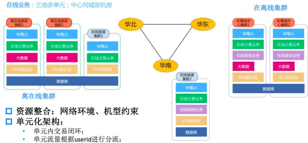 业务不断增长,在基础设施层储备了大量的资源以满足在线型和离线业务的需求。由于在线型业务和离线型业务有很多不一致的资源使用特性,最初设计时由两个独立的数据中心来支撑,当前,两个数据中心均已达到万台服务器以上的规模。