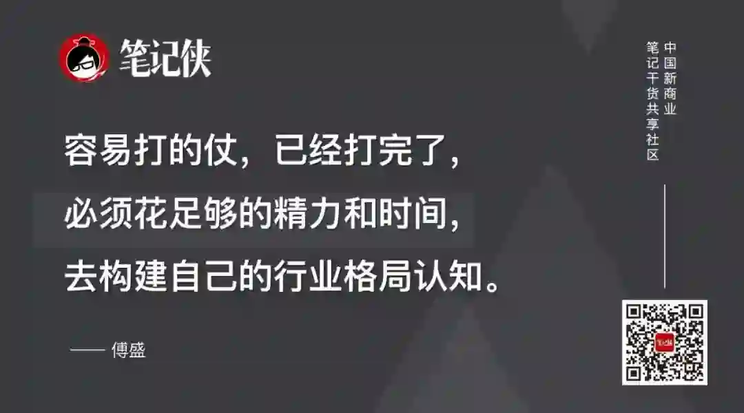 容易打的仗,已经打完了。怎么办?只有花足够的精力和时间,去构建自己的行业格局认知。