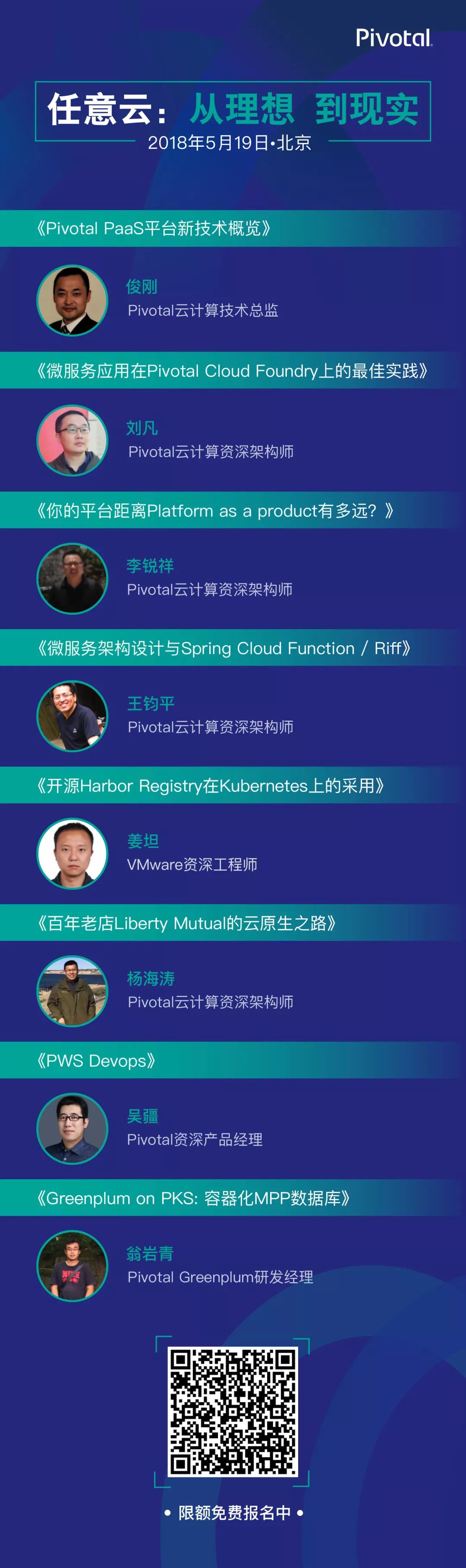 InfoQ记者近日采访了 Pivotal云计算技术总监俊刚,求解以上疑问;此外,InfoQ与 Pivotal将联合在 5月 19日在北京举办一场有关 Kubernetes、Cloud Foundry以及 Spring、微服务、云原生的研讨会,更多围绕 PaaS的技术细节将在会上进行详解,(点击文末可以免费报名)。