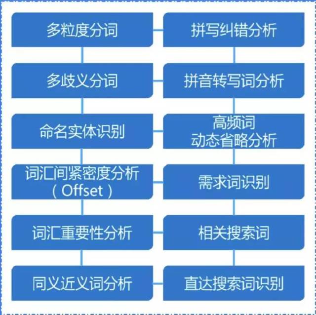 达观 query 意图识别引擎内部组合了多粒度分词、多歧义分词、命名实体识别、词汇间紧密度分析、词汇重要性分析、同义近义词分析、拼写纠错、拼音转写、高频词动态省略分析、需求词识别、相关搜索词、直达搜索词分析等多个功能模块。