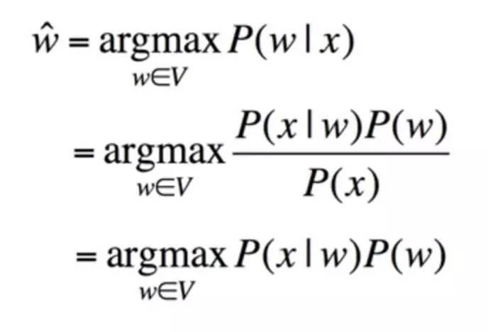 自然语言处理中的机器翻译,词性标注,语音识别等多个问题都可以使用信道噪声模型来解决,对于纠错问题也可以使用信道噪声模型来解决,相应的求解问题可以用公式表达: