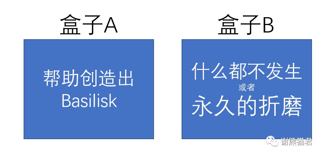 选项一:同时选择盒子A和B,也就是帮助创造出Basilisk,并且承受B中的结果(什么都不发生)