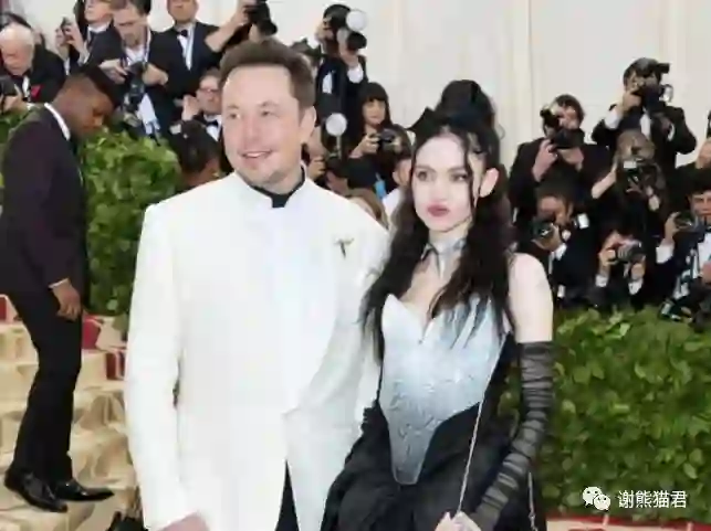 是不是觉得画风不太对?马斯克穿着白色西服,非常正式,女朋友格里姆斯(Grimes)则是打扮非常哥特。