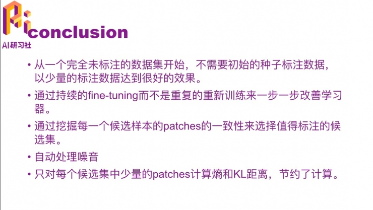 从标注数据来说,从一个完全未标注的数据集开始,刚开始的时候不需要标注数据,最终以比较少量的数据达到很好的效果;