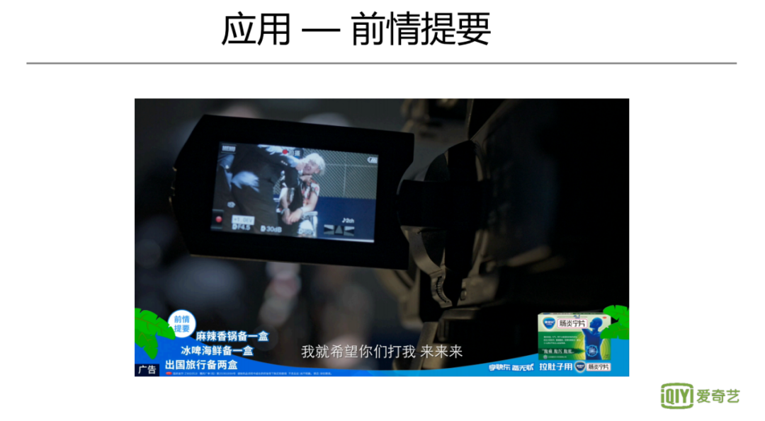 前情提要是精彩度相关的一个应用,运用算法对每一集识别出精彩片段,通过一定策略剪辑。虽然前景提要本身是一个用户产品,但可以在上面投放广告,并且处于片头这个黄金位置,实现了很好的商业价值。
