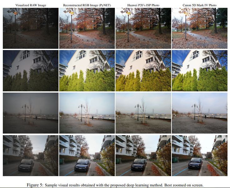 利用 PyNET 模型得到的重建图像可以轻松达到华为 P20 ISP 的水平,甚至可以媲美佳能单