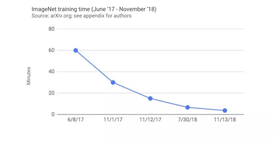就性能而言,人工智能算力继续飙升,尤其是在计算机视觉等领域。通过测量ImageNet的基准性能,该报告发现,在18个月内,最准确图片分类模型,训练时间从“小时左右”降至“4分钟左右”。训练速度快了大约16倍。其他领域,比如物体分割,在短短三年内就提高了72%的精度。