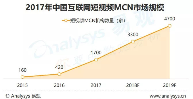 易观数据显示,2017年中国MCN机构的数量已达到2300家,预计2018年将达到4500家。MCN(Multi-Chanel Network)是一个舶来品,但不同于国外寄生于Youtube的MCN,中国学徒们不止是把内容打包售卖,而是要跟进IP从孵化到运营变现的整个流程。