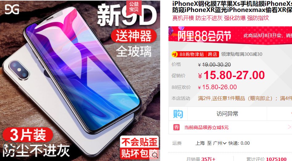 5 块高清膜、20 块钢化膜、100 块的土豪膜应有尽有,不怕膜廉价,就怕你不贴。