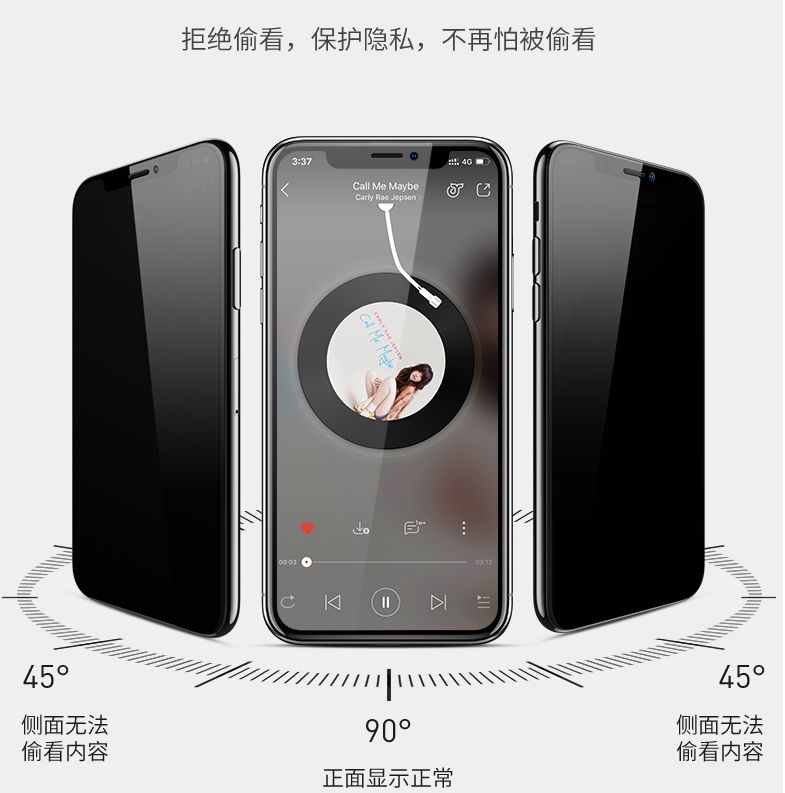 这两年比较流行,采用“超微百叶窗”光学技术加工过的膜,让屏幕只能在正面观看,从左到右偷看则会变成漆黑一片、模糊不清。