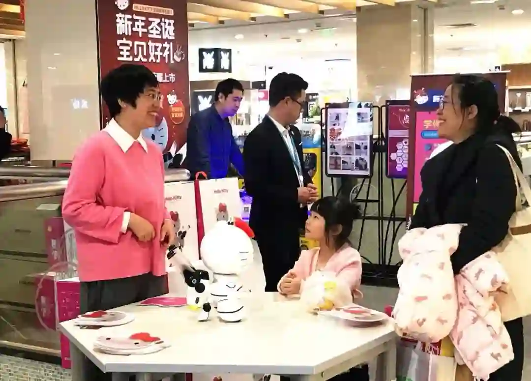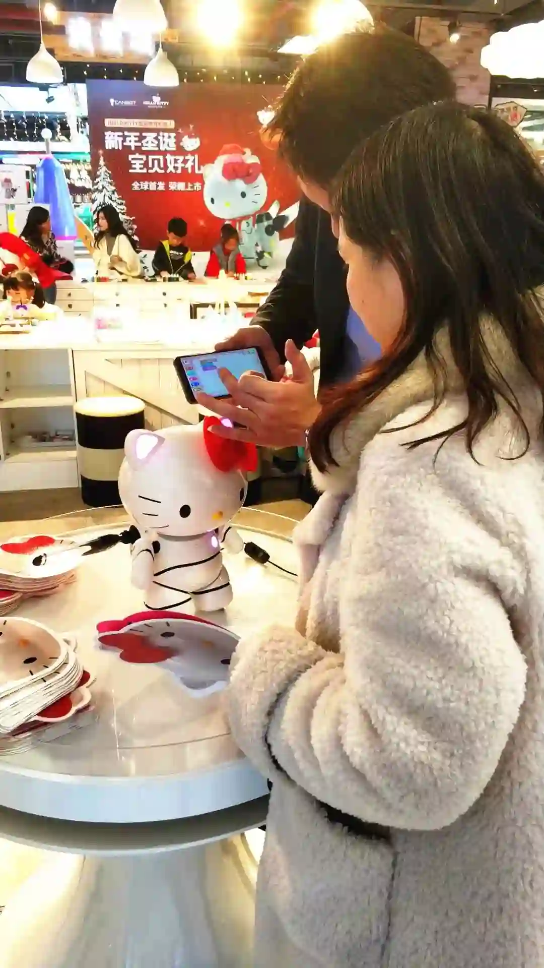 记者现场采访了同时购买两台的赵女士,了解到赵女士的女儿有一个好朋友很喜欢Hello Kitty,两家也经常一起带孩子玩耍,看到这么又好玩又好看还能教孩子学习的机器人,决定额外买一台作为圣诞礼物送过去,也让孩子学会分享。可以说Hello Kitty机器人有着成为宝贝好礼的所有元素,这也是其销售火热的重要原因。