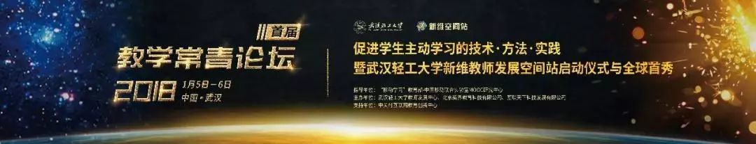 2018年1月5日至1月6日由“移动学习”教育部-中国移动联合实验室MOOC研究中心指导,武汉轻工大学教师发展中心、北京新界教育科技有限公司、互联天下科技发展有限公司主办,中关村互联网教育创新中心支持的首届“教学常青论坛”|促进学生主动学习的技术·方法·实践暨武汉轻工大学新维教师发展空间站启动仪式与全球首秀在武汉轻工大学教师发展中心新维教师发展空间站成功举办。