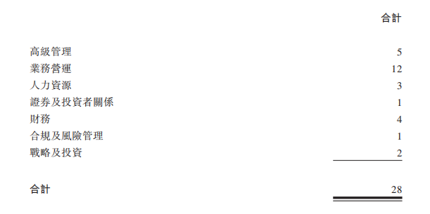 中烟香港招股书显示,公司高级管理5名,业务营运12名,人力资源3名,证券及投资者关系1名,财务4名,合规及风险管理1名,战略及投资2名,合计雇员28名。其中10名雇员担任管理职务,均由中烟国际派遣。
