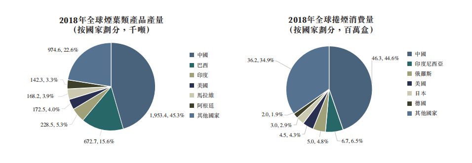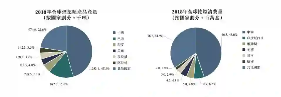根据弗若斯特沙利文报告,中国的卷烟销售额于2018年达到人民币14405亿元,约占全球卷烟消费的44.6%。