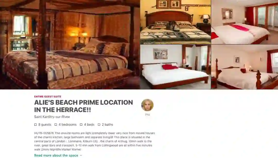假房生成网站 thisairbnbdoesnotexist.com,每次刷新都会出现一个虚假的房源,网页上的照片、文字描述、发布人头像均由计算机自动生成。由于使用的模型非常简单,文字描述多有不合逻辑之处,但乍看上去还是能以假乱真。来源:假房生成网站 thisairbnbdoesnotexist.com