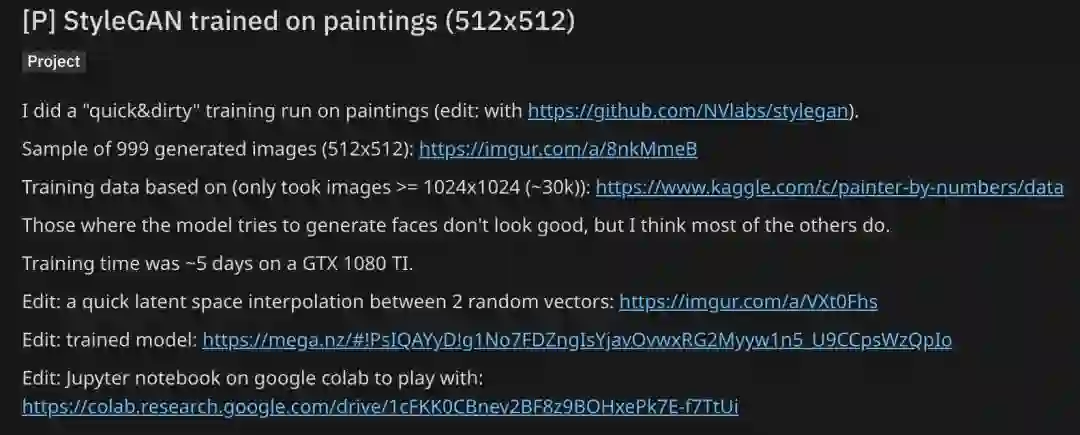 https://www.reddit.com/r/MachineLearning/comments/bagnq6/p_stylegan_trained_on_paintings_512x512/