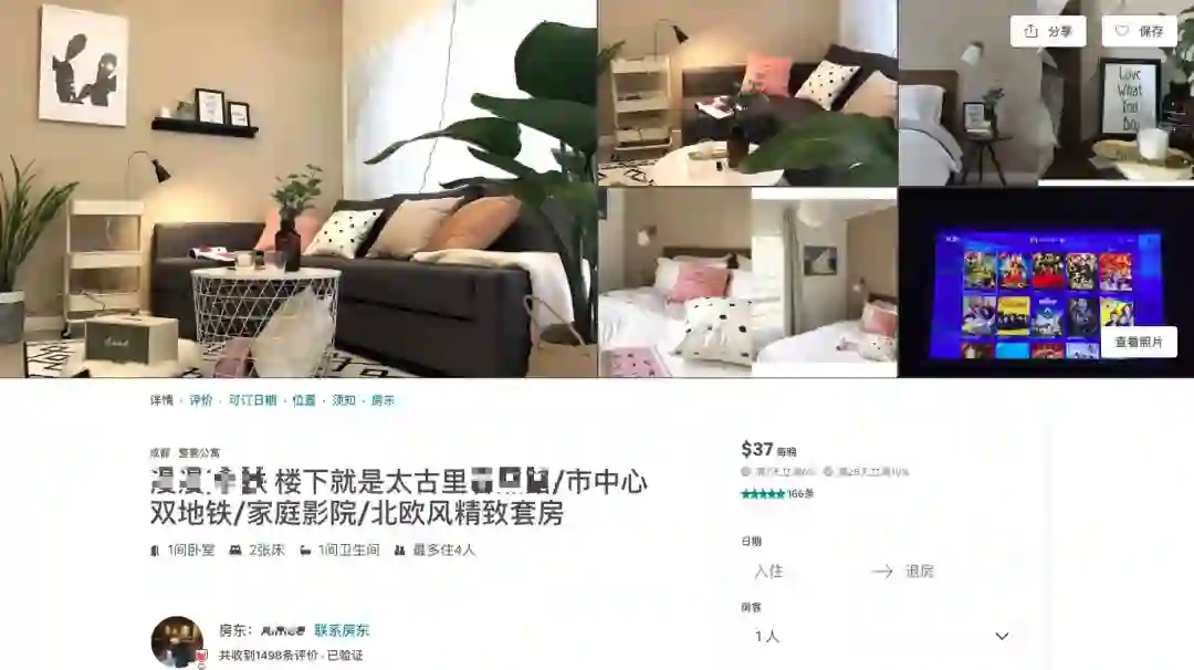 AirBNB网站截图,避免广告嫌疑做了虚化处理