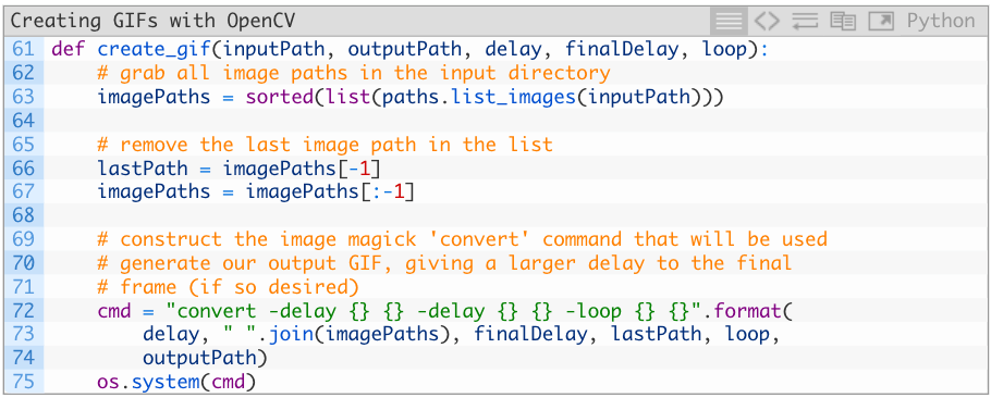 接着创建一个帮助函数,可以用ImageMagick从一系列图片路径中生成一个GIF: